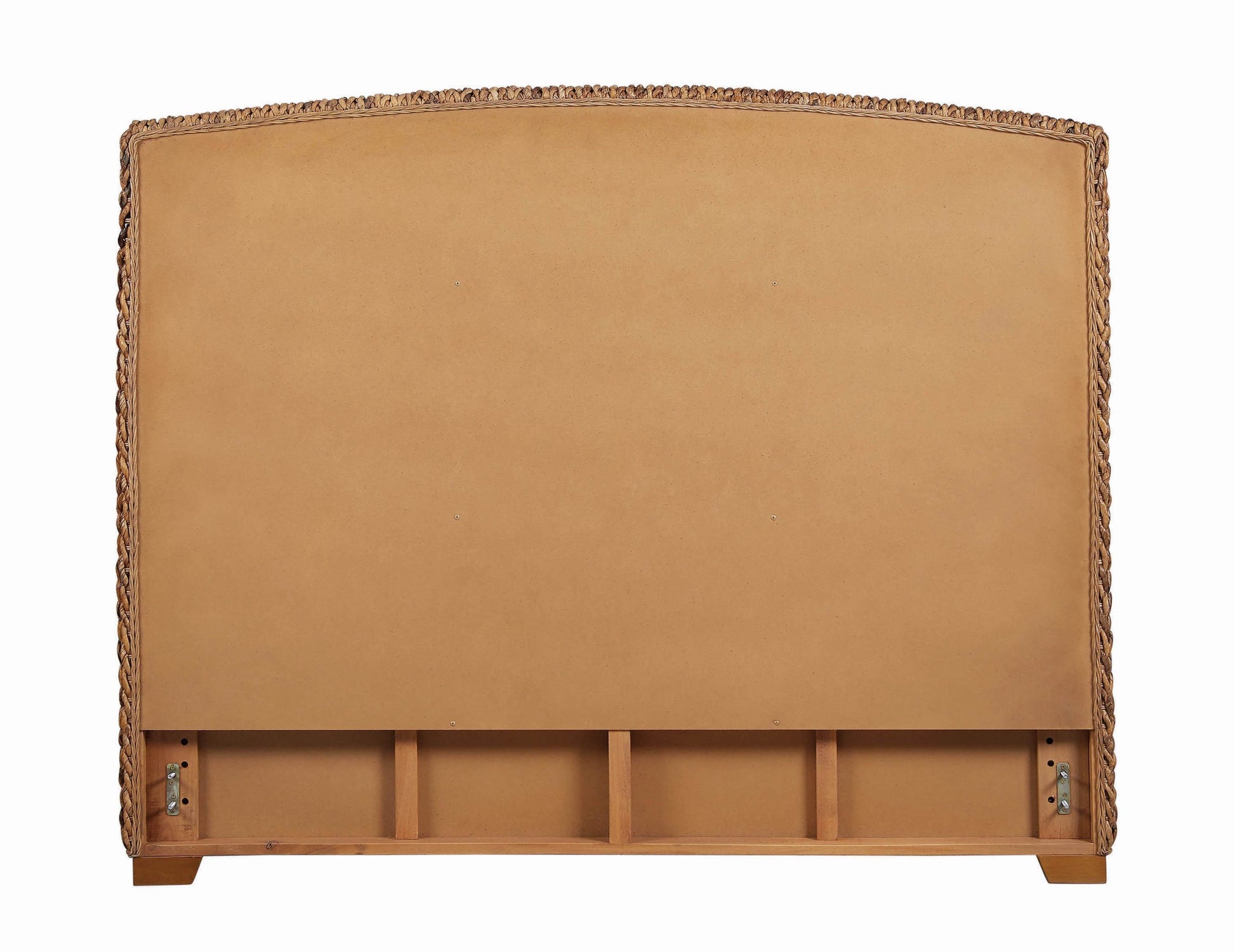 The modern country style bed from the Laughton collection is a handsome addition to the bedroom. It’s expertly crafted with solid wood and select veneers for years of reliability. The bed is lovingly embellished with light hand distressing accents in a rustic brown finish. It imparts a warm, inviting look that’s sure to please. Available in natural brown or dark brown to perfectly match the bedroom decor. SKU: 300501Q NAME : Laughton Queen Hand-Woven Banana Leaf Bed Amber