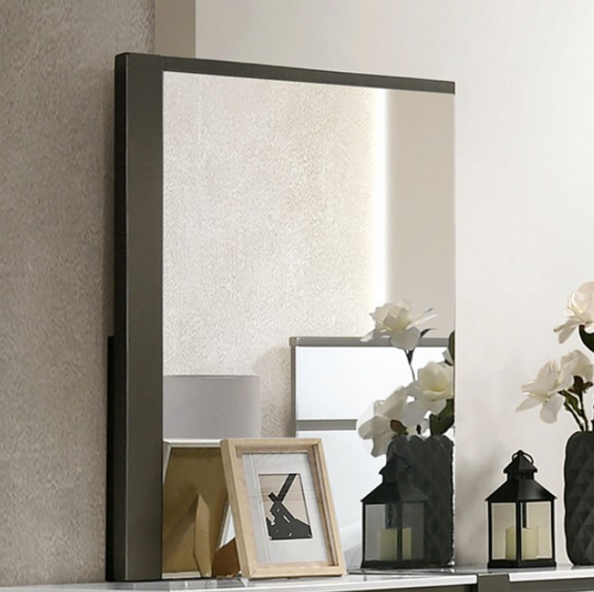 Just one look, and there is no doubt where this mirror belongs--in a modern home. For starters, the frame is finished in dark, metallic gray. Look closer, and you'll notice how the frame itself is not even in width all around; this purposeful asymmetry adds more to the appeal and modern vibe.