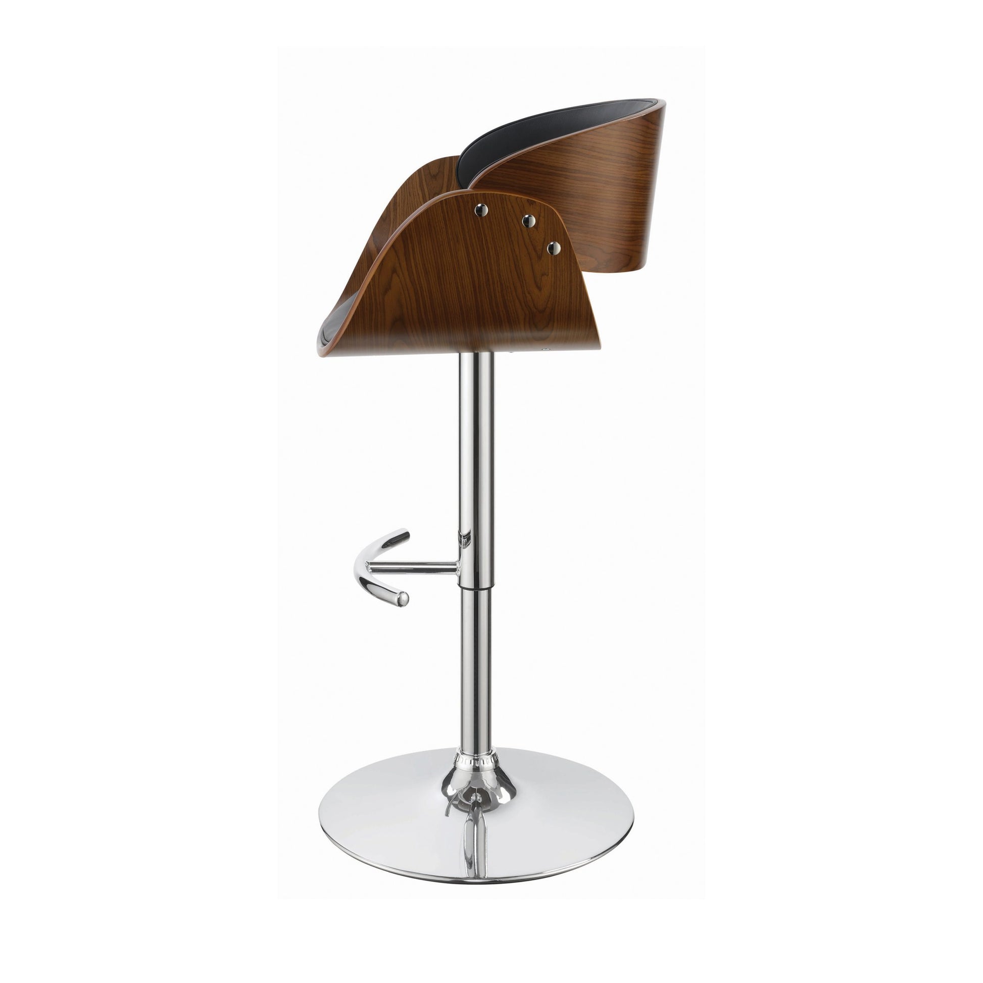 Perfect for a home bar or kitchen island, this barstool is conveniently height adjustable to fit with any space. Beautifully designed, it features a simple, sleek support that flares elegantly into a sturdy, round base. Its seat boasts a cool, curved silhouette with a pleasingly modern feel. The shiny finish of its base creates an appealing contrast to the subdued shades of its seat. With comfortable back and foot rests, it offers maximum support and durability. SKU: 104965 NAME: Adjustable Bar Stool Black And Chrome