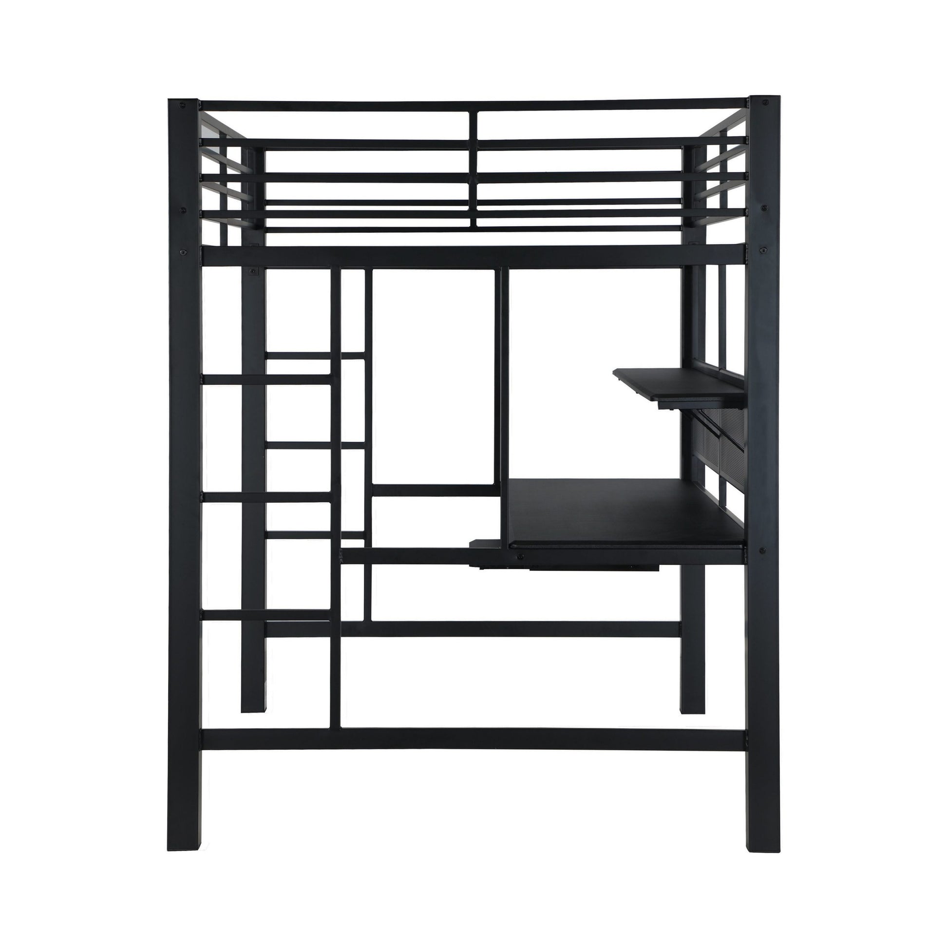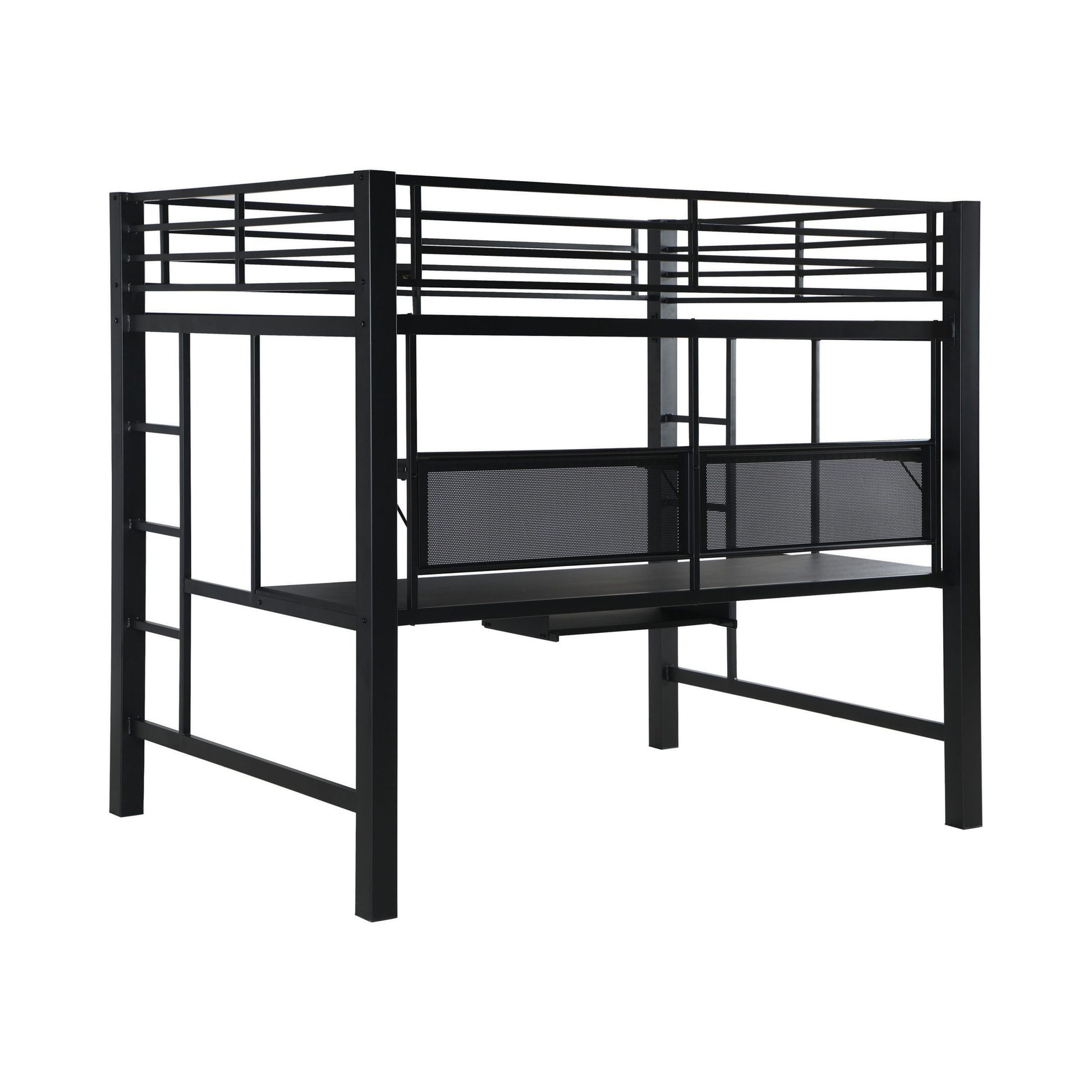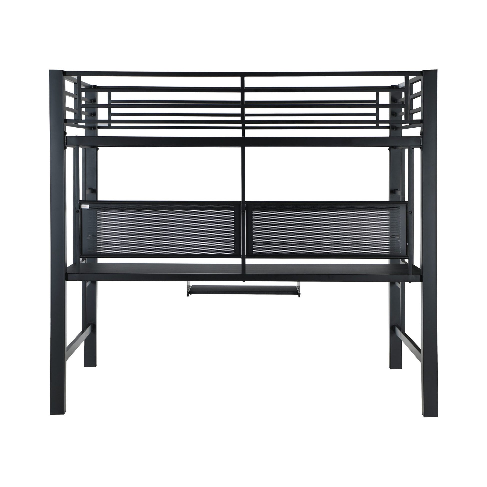 For workaholics who never stop thinking about their next great innovation, this workstation loft bed is a godsend. Combine work and sleep in a modern way with demonstrable sophistication. Metal loft bed is finished in black. Below the bed is work area that includes desk with keyboard tray and storage shelf. A delightfully contemporary addition to any living space, particularly a loft. SKU: 460023 NAME :Avalon Full Workstation Loft Bed Black