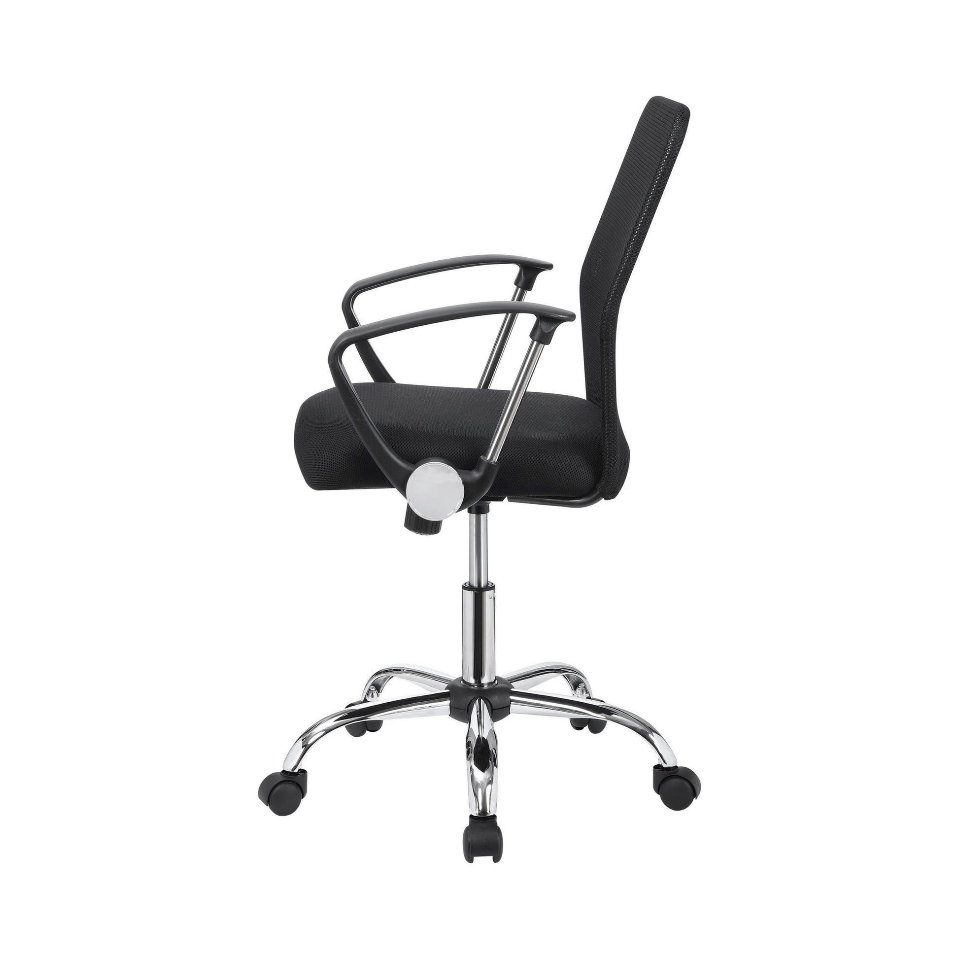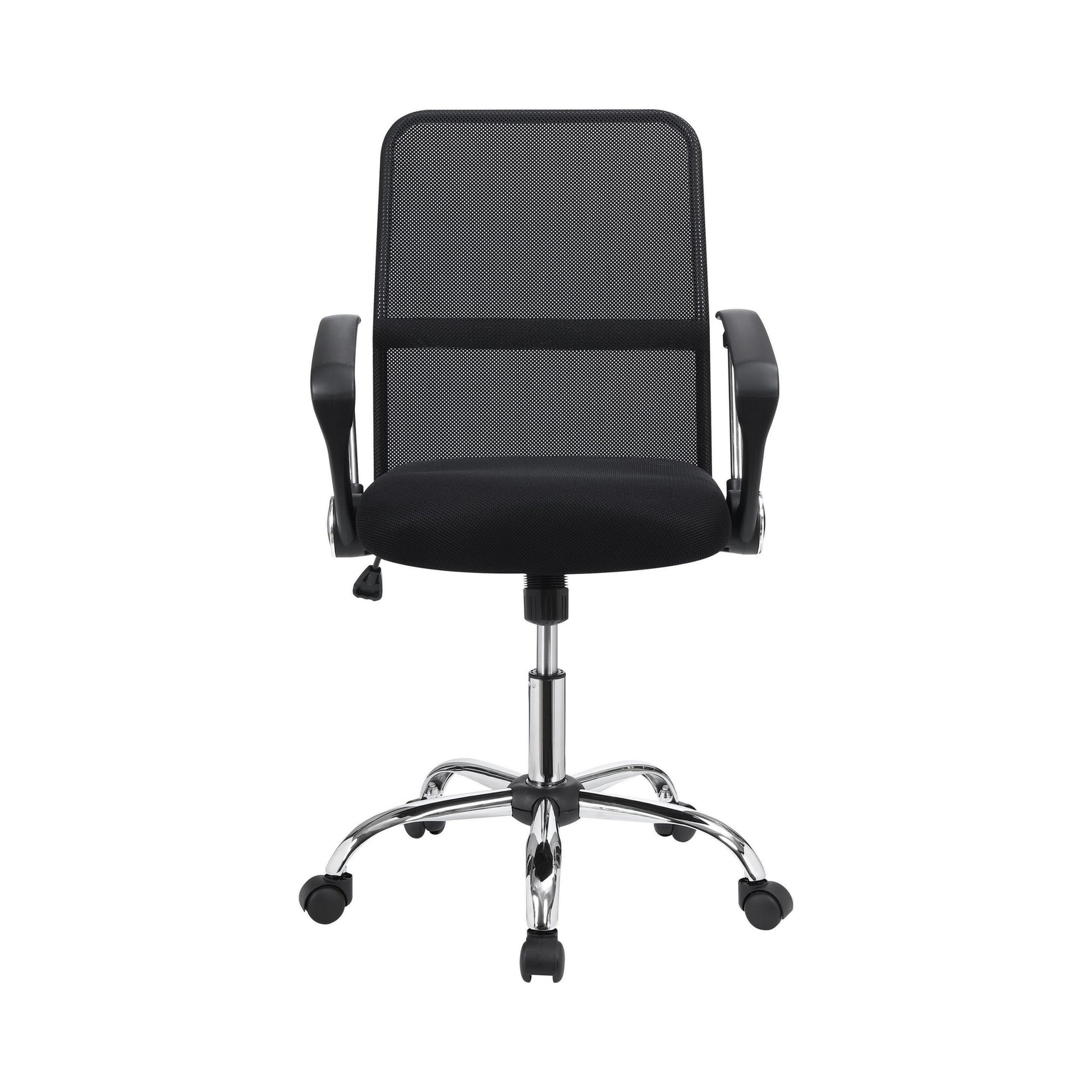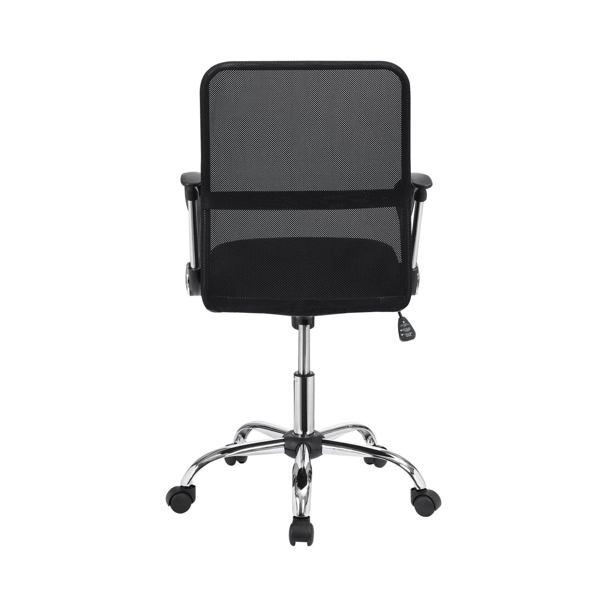 Make work a pleasure. This stylish black office chair reflects an improvement on conventional chairs with its ergonomically positive build. Breathable fabric makes its seat back airy and light. Slender armrests unattached to its seat back allow more flexibility in movement. Adjust seat height positions to meet your needs. SKU: 801319 NAME: Office Chair With Mesh Backrest Black And Chrome