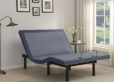 Revitalize yourself each and every night with this stunning multifunctional adjustable bed base with grey fabric trim and adjustable or removable legs. The bed base delivers the latest in modern technology with dual massage function on the head and foot of the bed, with three levels of intensity for optimal relaxation. The bed is equipped with a wireless remote that’s backlit and gives full control of the height of the head and foot of the bed and includes presets for a most comfortable night’s sleep. Each side of the bed is equipped with a dual USB port perfect for keeping bedside electronics charged and ready to use. You can even control the bed from your phone with Bluetooth connectivity and the Coaster app installed on your smart device. SKU: 350132Q NAME: Negan Queen Adjustable Bed Base Grey And Black