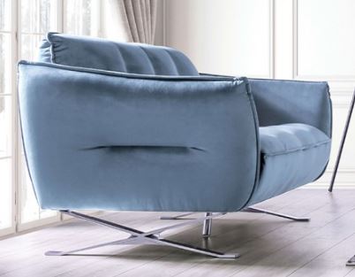 For the Civellutino, we took inspiration from nature to bring an upscale and trendy piece to your home. Upscale yet serene, the elegant sheen of the light blue velvet-textured fabric is enhanced by the unique chrome legs. Biscuit tufting and seams all-around evoke waves and clouds--ripples in space that make its use a truly calming and satisfying experience.