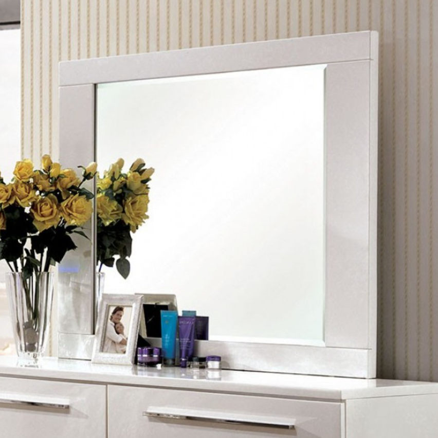 Furnish your bedroom with this stylish bedroom collection for a contemporary look. Taking glam styles into consideration, these pieces are clean-cut and awe-inspiring. This mirror features a smooth white finish that resonate with the style of modern decor.