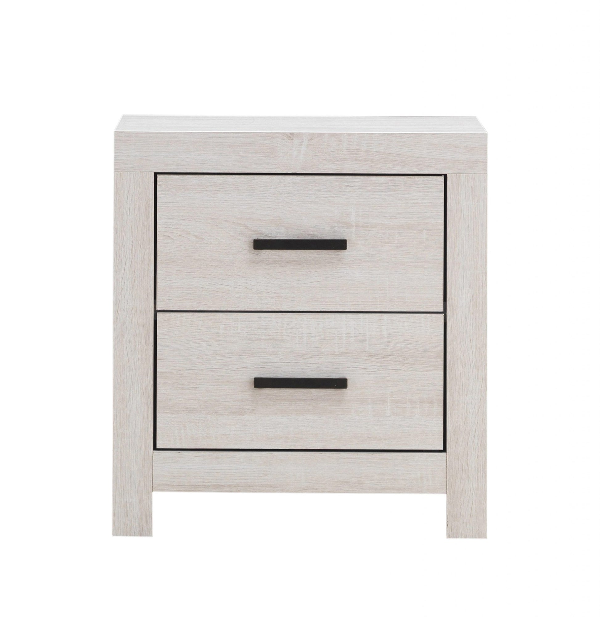 Give a bedroom a fresh, modern update. This contemporary nightstand delivers clean lines for an exceptionally stylish look. Two slide-out storage drawers keep bedside essentials close at hand. A selected 3D paper veneer makes it easy to clean and maintain. Available in your choice of gorgeous finishes, this attractive piece is a fabulous bedroom upgrade. SKU: 207052 NAME : Brantford 2-Drawer Nightstand Coastal White