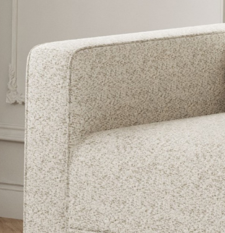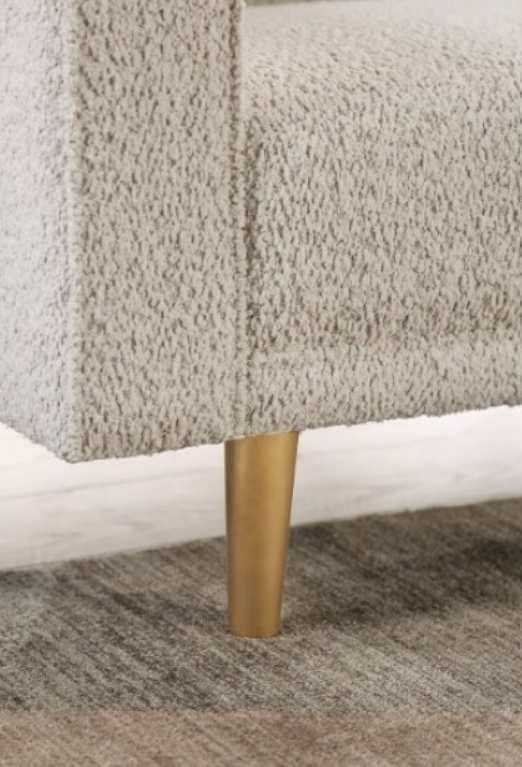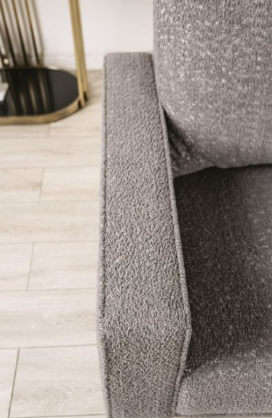 Clean lines and a boxy silhouette make this modern sofa set the true focus of your room. The rigid framework showcases sleek track arms with welt trim as well as the single bench-style seat cushion. It also cleverly masks the most stylish part of this piece--the frame and back pillow is upholstered in exclusive chic boucle with metallic undertones, a trendy choice of fabric that will bring contemporary charm to any sophisticated urban space.