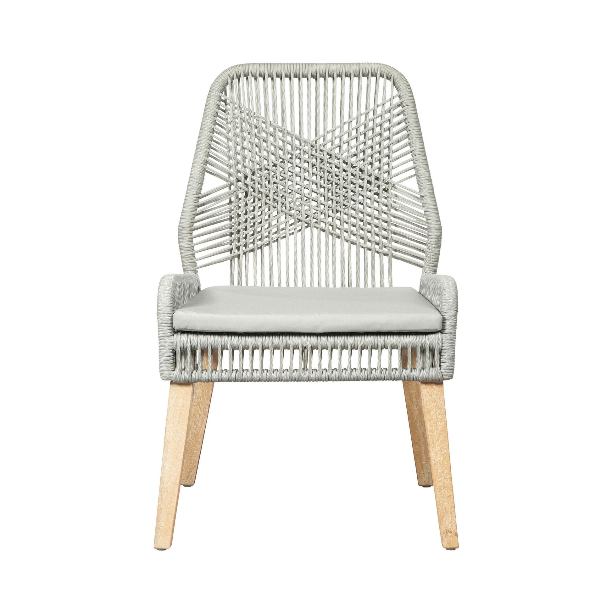 - Hand-crafted rope loomed chairs with an aluminum frame and mahogany wood legs
