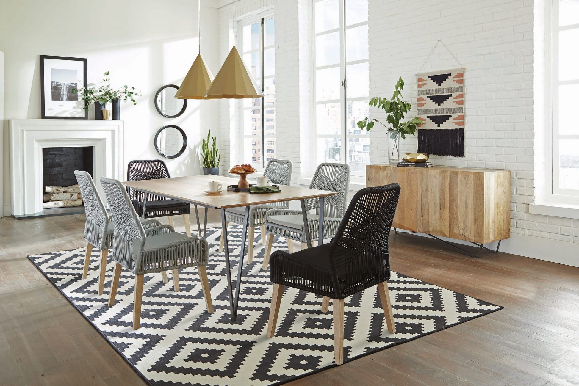 Capture the exotic flavor of this fun dining chair. Perfect for everyday use in a dressed up casual space, its sleek grey woven seat and seat back reflects an artful, inspirational design. Weathered wash finish wood legs taper slightly and slant just enough to create a balanced silhouette. This light, airy chair is ideal for a sun porch or a compact corner space. Choose a glass or wood table to enhance its stylish appeal. SKU: 110033 NAME: Woven Back Side Chairs Grey (Set Of 2)