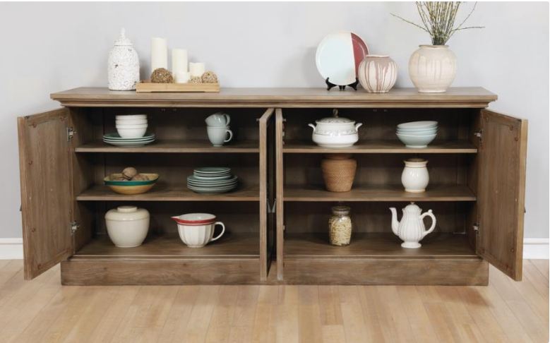 - Server offers plenty of storage with four cabinet doors and gunmetal black hardware