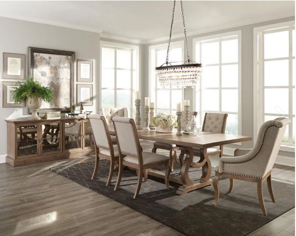 - A transitional dining collection featuring a traditional design and with modern glamorous details
