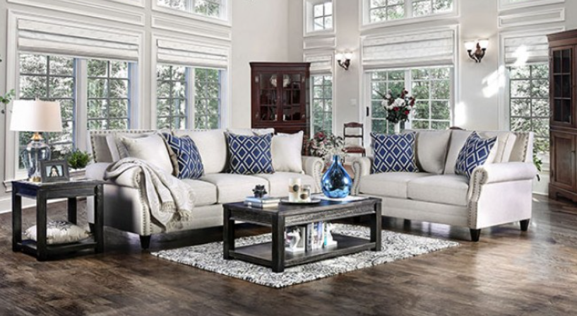 Grace your home with the beauty and elegance of this classically structured sofa collection. Fitted back and seat cushions create a comforting seating environment while surrounded by shined nailhead trim. Rolled arms add emphasis to the timeless design while drawing attention to the tapered wood block legs below.