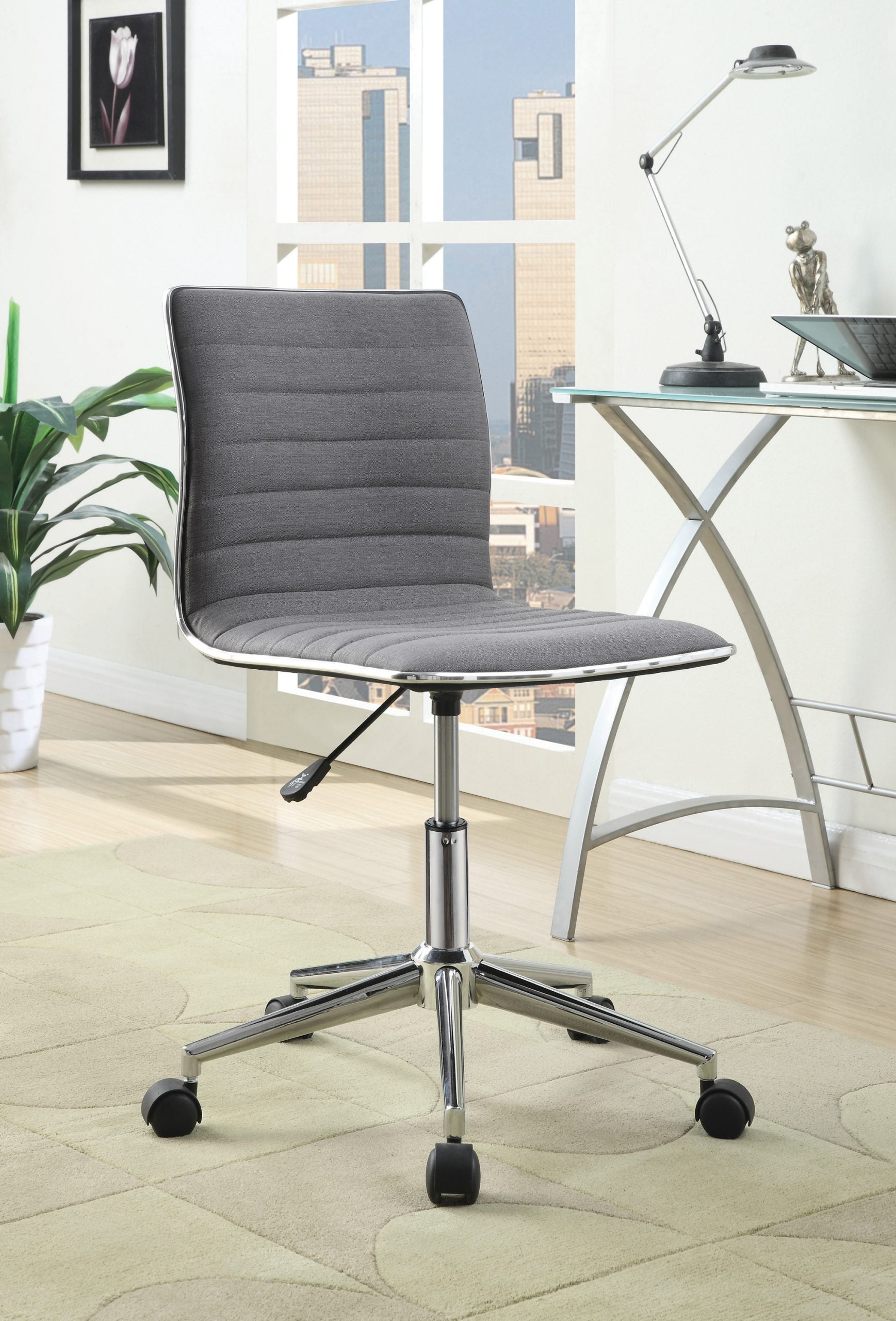 Take an office space to a casual, contemporary height. This office chair embraces a minimalist look with superb seating comfort. Covered in grey upholstery fabric, it’s both stylish and versatile. Enjoy gentle contours that lead to ergonomically excellent seating positions. Adjustable height settings join caster wheels to make customizing and moving about a snap. SKU: 800727 NAME : Adjustable Height Office Chair Grey And Chrome