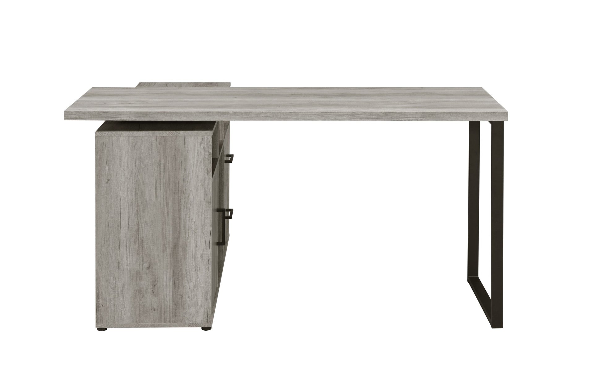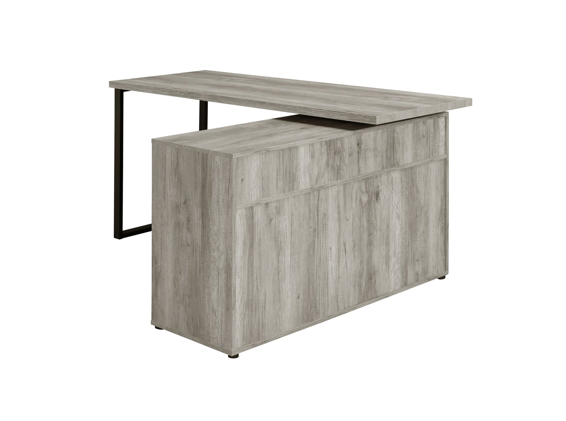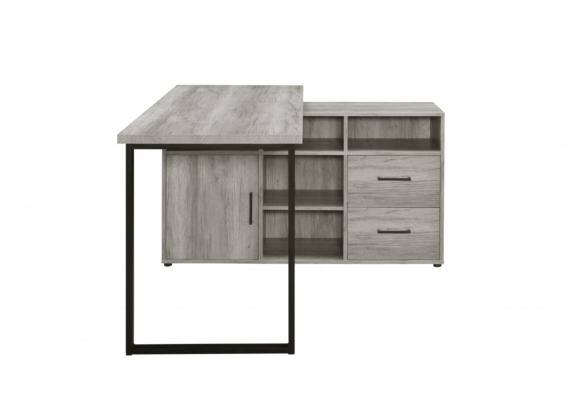 You’re bound to win the prize for the most organized workspace with this office desk. Its rustic design is enhanced with a sleek geometric style frame. The open design provides a clean and airy appearance. Five open shelves are perfect for displaying decor. Stylishly organize your belongings within the two built-in drawers with sleek bar pulls. SKU: 804462 NAME : Hertford L-Shape Office Desk With Storage Grey Driftwood
