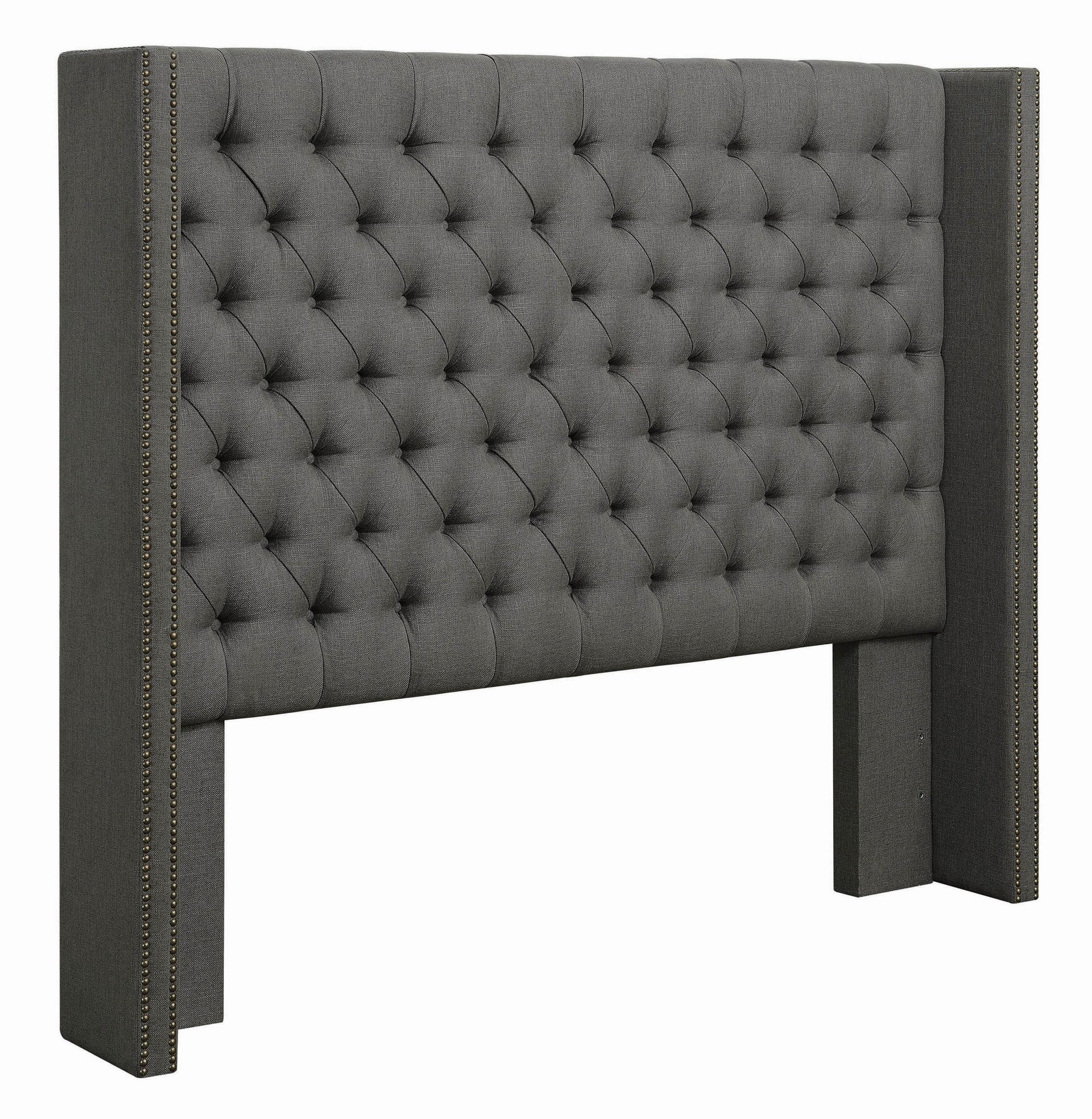 Dress up the decor of a traditional-style bedroom with cool, classic elegance. This tasteful queen bed boasts a chic design that instantly updates a room. Its grey fabric upholstery gives it a touch of exquisite softness. Beautiful button tufting adds character and charm. Paired with your favorite queen mattress, this comfortable bed lets you relax in style. SKU: 301405Q NAME : Bancroft Demi-Wing Upholstered Queen Bed Grey