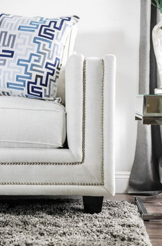 A clean streamlined design gives this set a beautiful aesthetic that can fit into any upscale room transformation. The straight lines of the track arms and skirt are highlighted by twin nailhead trims that trace along the tight angles of this sofa set. The included throw pillows add a touch of playful pattern and blue hues for a sleight coastal aura. Give your home an upgrade with this stunning sofa collection.