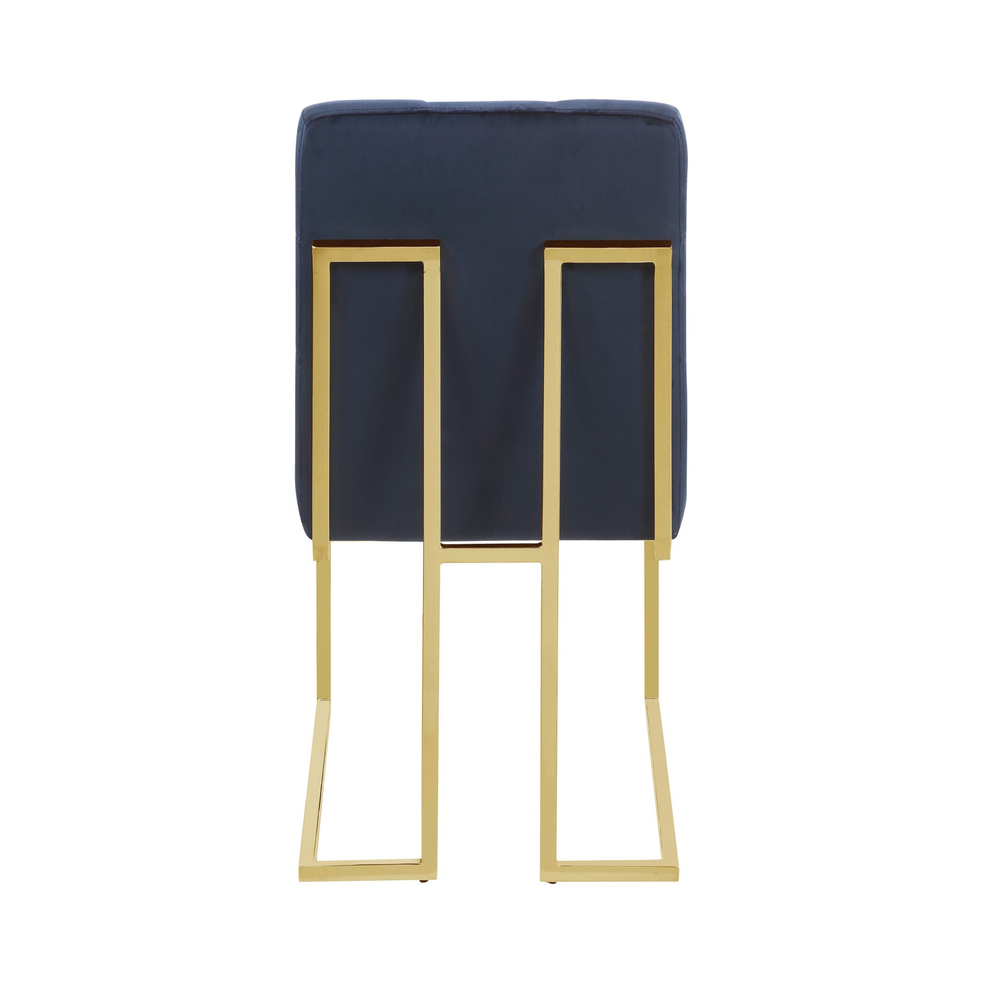 Bold color and radiant metallic from this armless dining chair create a stunning visual. Arranged elegantly, sleek and metallic gold legs create an open feel. Plush blue cushions fill the seat and back, elevated with button tufts. Bold colors and angles meet to create a luxurious piece that adds style and comfort. Dine with a chic, art deco-inspired twist. SKU: 192493 NAME : Tufted Back Side Chairs Ink Blue (Set Of 2)