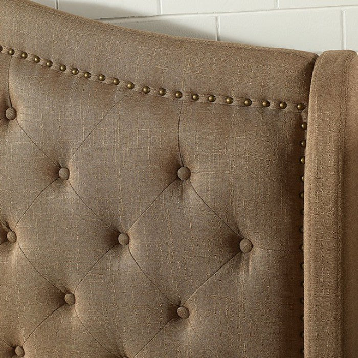 Upgrade your bedroom with some contemporary elements! The warm and dark tones of this platform bed will set the mood for relaxation so that, after a hard day’s work, you will not be able to resist! The button tufted headboard with padded linen and nailhead trim works perfectly together to liven up any modern day home. SKU: CM7160BR NAME : CARLY