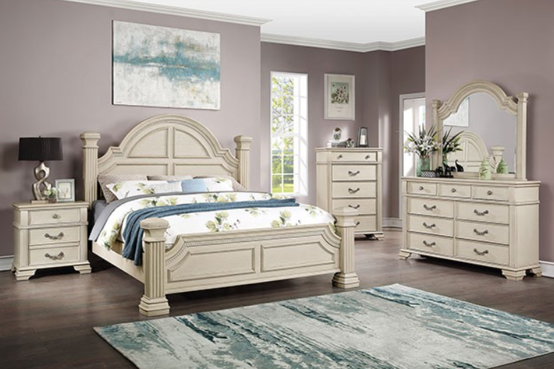 Turn any bedroom into a luxurious get-away with this beautiful ensemble. A unique etched trim is the main visual centerpiece for the dresser, while traditional elements such as the bracket feet and bold reeded posts combine to create a sense of regality. In the same light, the trim molding and ornate nickel hardware that adorn the drawer panels inspire timelessness.