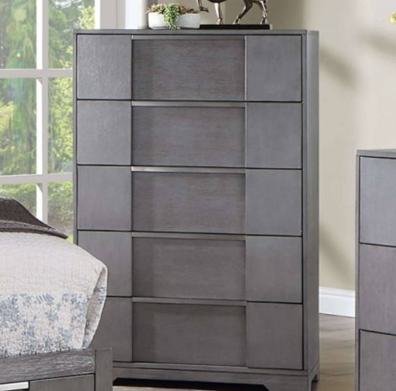 This bedroom collection combines class and contemporary design, with recessed nickel finger pulls that help accentuate class and glamour. Complimenting case goods with the same sleek hardware, ample storage space, and felt-lined top drawers complete the subtly refined appearance.