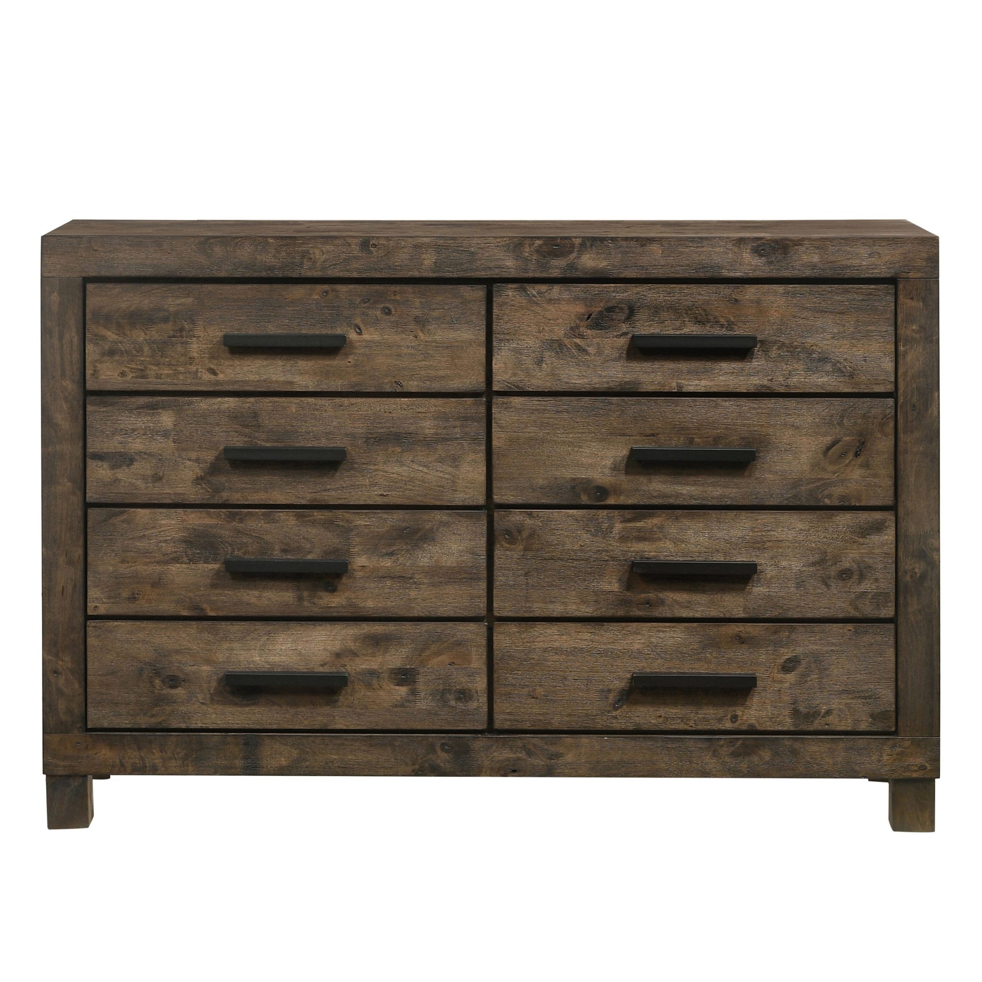 Bring a bedroom together with the rich, rugged design of this handsome, rustic style dresser. A golden brown finish with natural wood grains adds warmth and depth to its design. Eight storage drawers provide plenty of space for clothing and bedroom essentials. Wooden handles top each drawer for added style and ease of use. Pair this rustic dresser with a matching nightstand and chest to instantly amplify your decor. SKU: 222633 NAME : Woodmont 8-Drawer Dresser Rustic Golden Brown