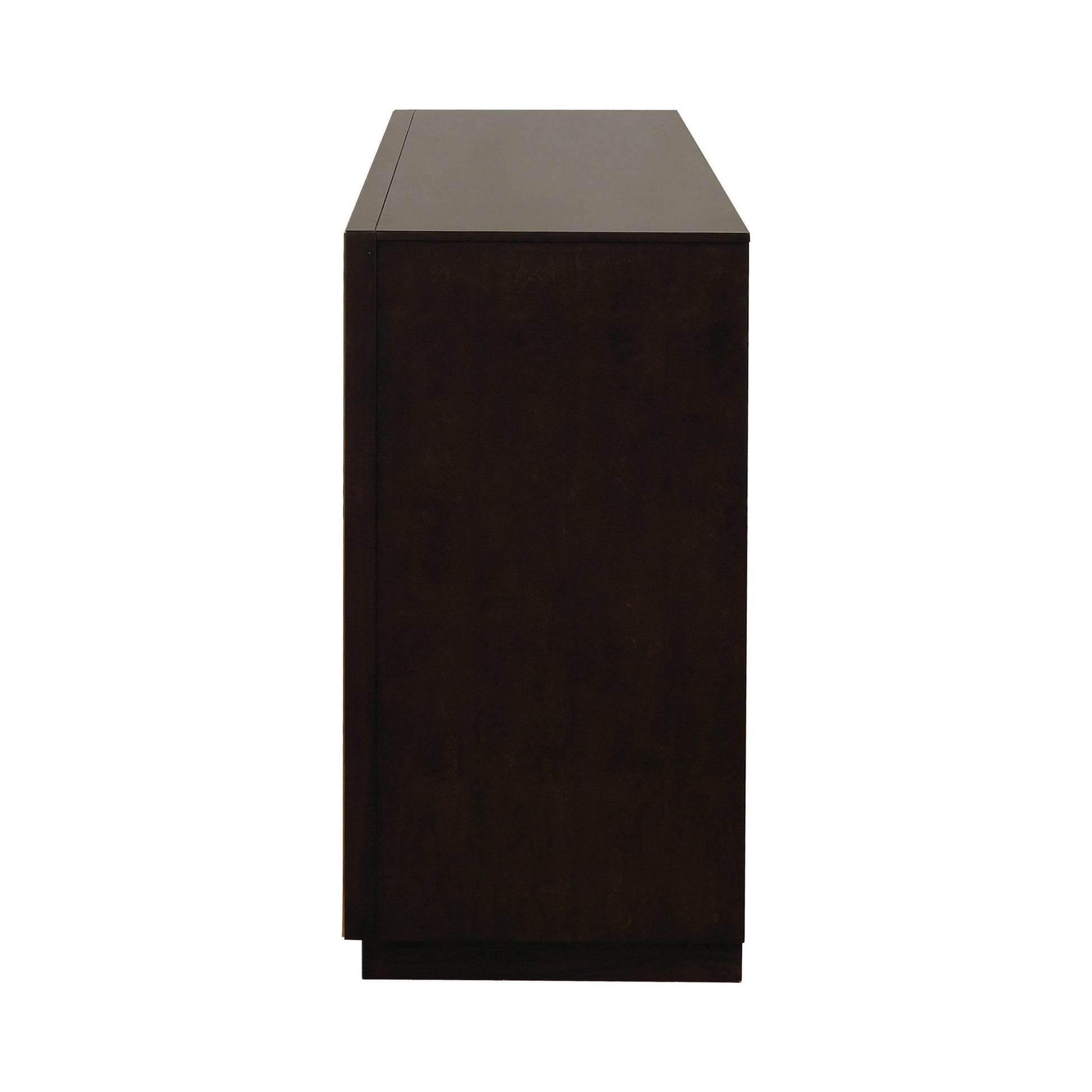 Embrace a retro feel in a modern bedroom with this stunning nine-drawer dresser. Elongated metallic drawer pulls protrude from flat drawer fronts, inspiring a sleek look. In a rich and warm smoke peppercorn finish, the deep hues and interesting silhouette create a bold visual. Its simple and smooth profile creates a structured aesthetic, complete with a smooth base that reaches toward the floor. Enhance with a chic perfume collection or a delightful sculptural piece. SKU: 223263 NAME : Durango 8-Drawer Dresser Smoked Peppercorn