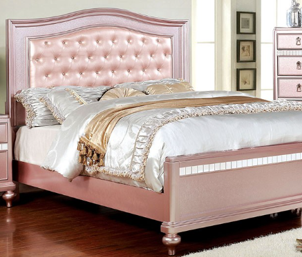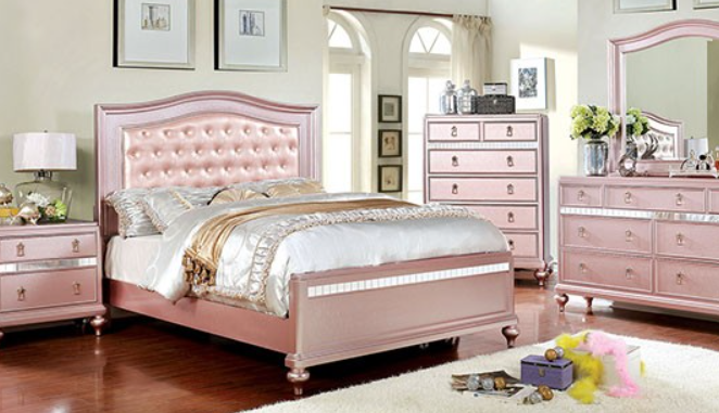 Resting atop elegant bun feet, this glamorous bedroom set brings a touch of stylish appeal that instantly brightens any space! Sophisticated button tufts adorn the leatherette upholstery of the headboard, which brings more attention to its thick and chic frame. Mirrored accent panels bring extra glitz to the design and make this a stunning set to admire! SKU: CM7171BK Name: ARISTON