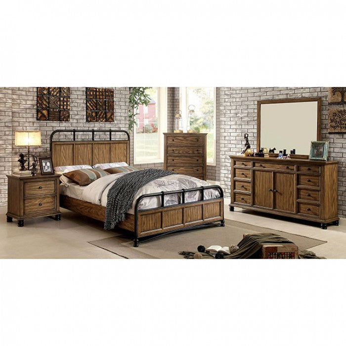 A trending design, industrial style is the latest in fabulous decorating ideas! This mirror features beautiful wood panels in dark oak finish. SKU: CM7558M Name: MCVILLE