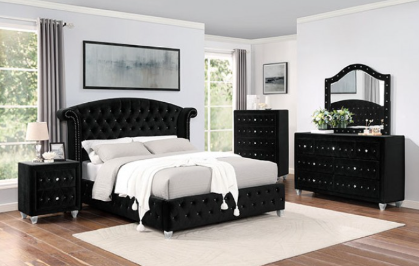 Showcase your personal taste with this bold statement piece in your bedroom. Fully upholstered in flannelette, this mirror features padded fabric and crystal buttons, bringing in majestic vibes that this ensemble set out to do.